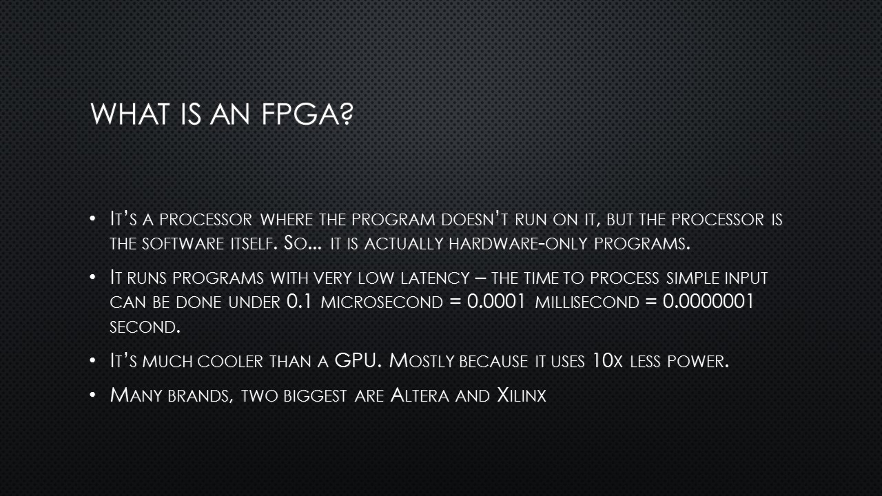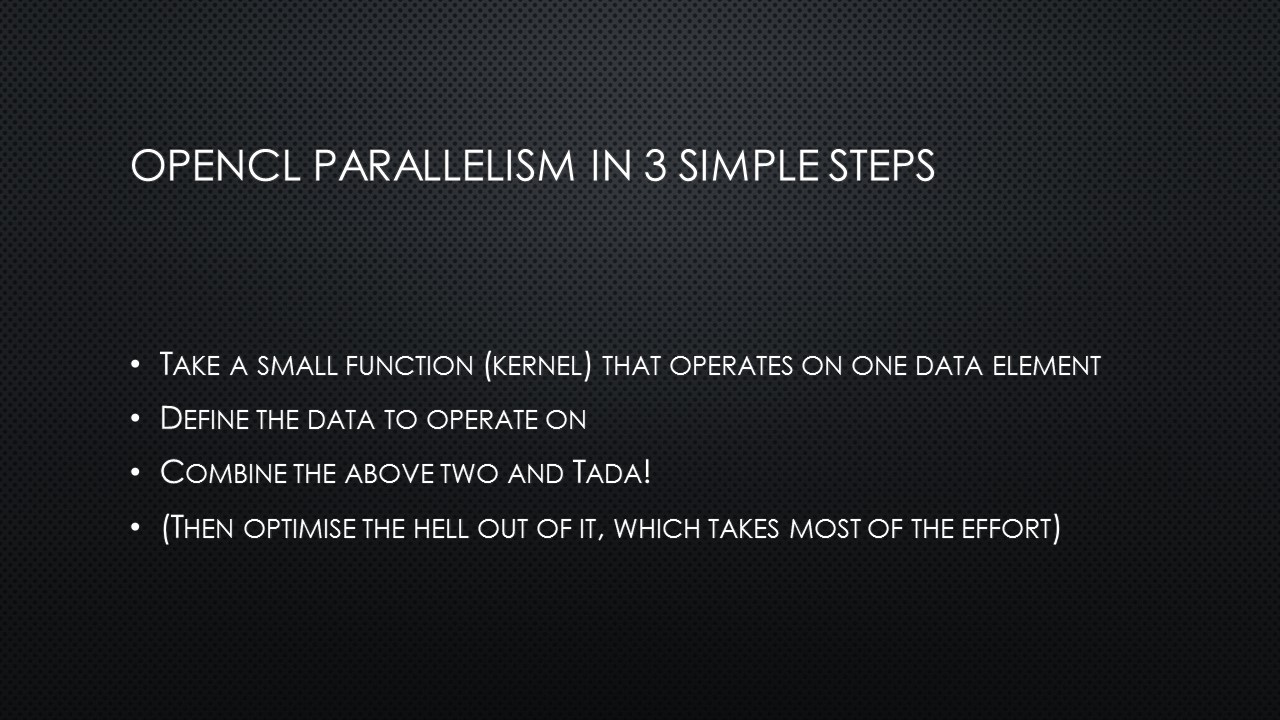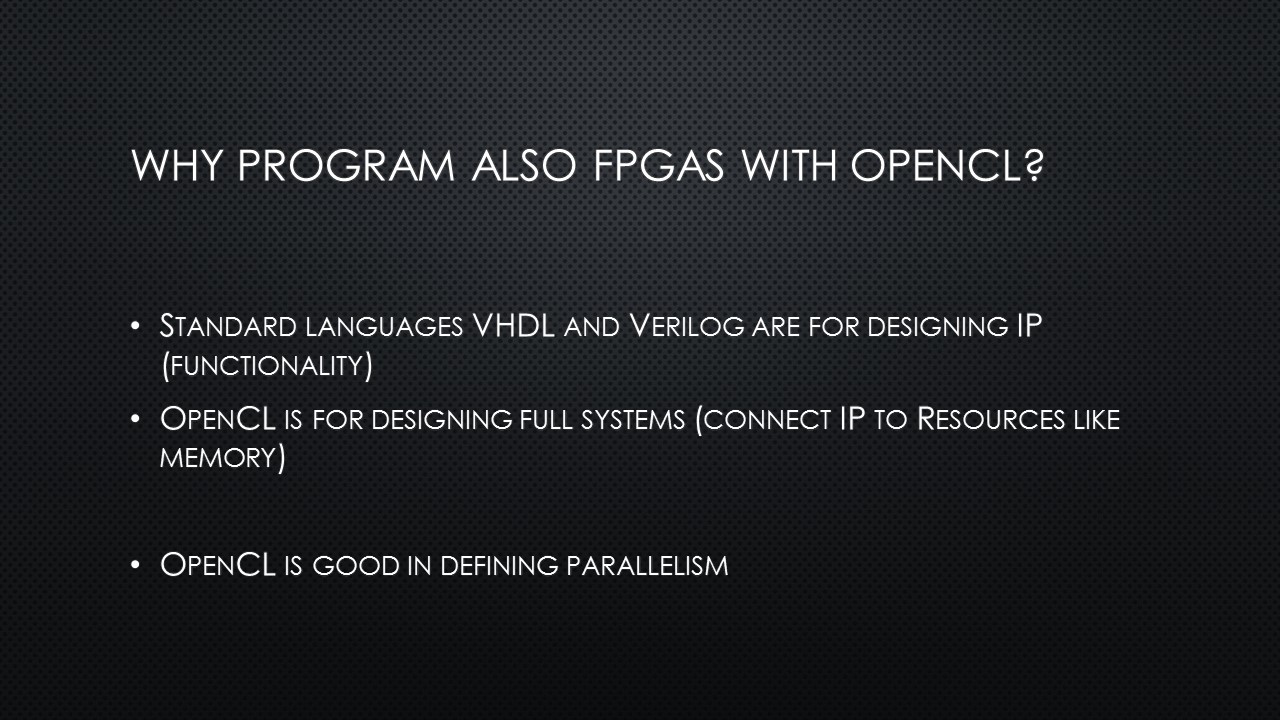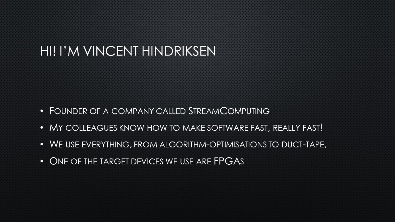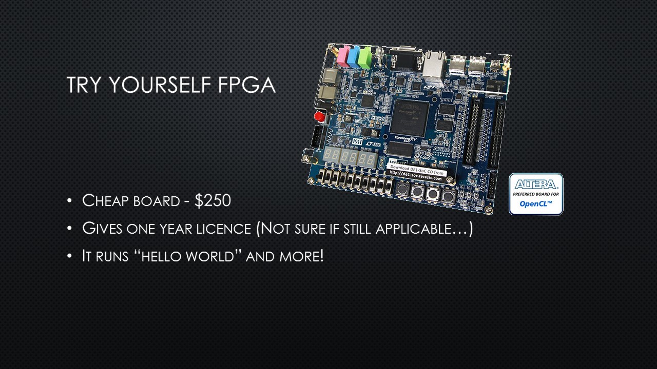 What do you do when you want to explain OpenCL and FPGAs and OpenCL-on-FPGAs to a beer drinking crowd in just 15 minutes? Well, you simply can’t go deep into the matter. On a Thursday evening, 5 November 2015, I was standing on a chair for a beer-loving group of Hackers and Founders with my laser-powered presenter, trying not to loose everybody. It was not the first time I stood on that particular chair – some years ago I presented about OpenCL-on-GPUs.